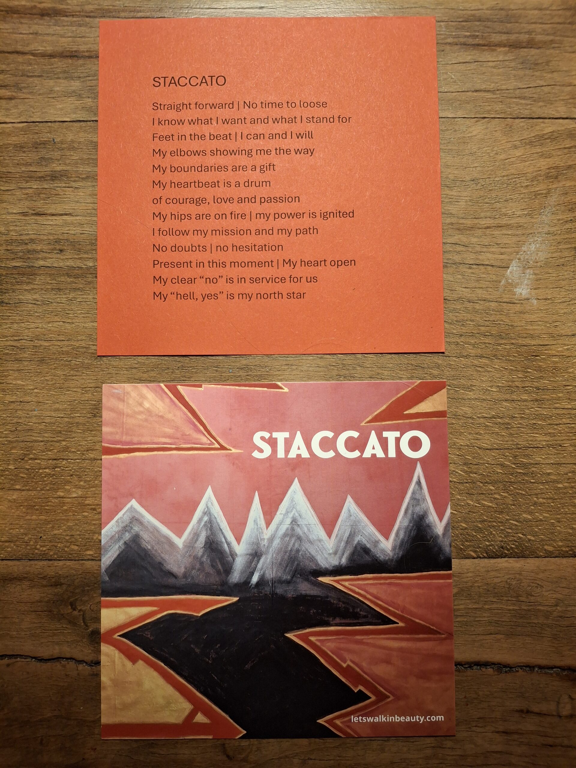 5 Karten aus farbigen Buntpapier: Englische Texte zu den 5 Rythmen